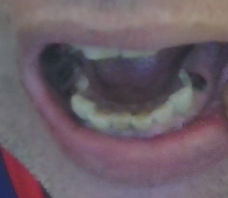 Teeth don’t need to be removed; they break and burn on their own, perhaps only soothing for days of pain from infection. As you can see in this picture of me. My teeth are like this, but I’ve never suffered pain. Another photo of me, on the left side, shows the gums already prepared for teeth to emerge.